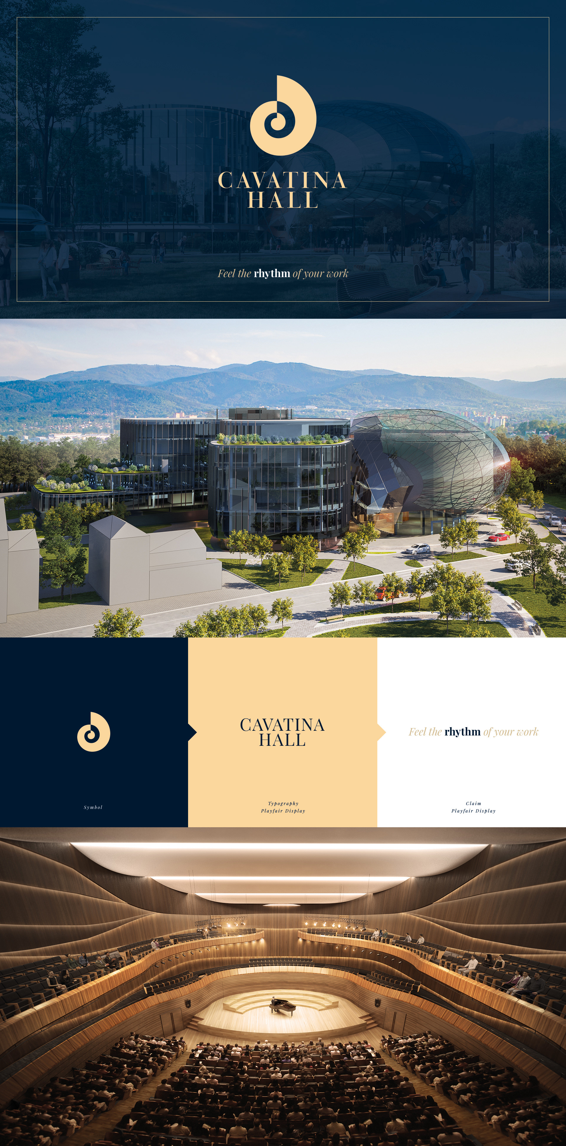 Projekt logotypu dla nowo powstającej inwestycji w Bielsku-Białej. Łączącej powierzchnie biurowe z funkcją kulturalno-rozrywkową. Logotyp inspirowany kopułą sali koncertowej. - 2019